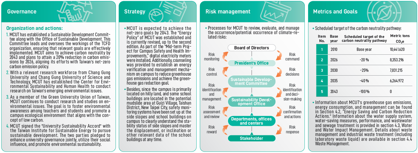 Action Plans Adopted by MCUT for Four Core Elements of TCFD
