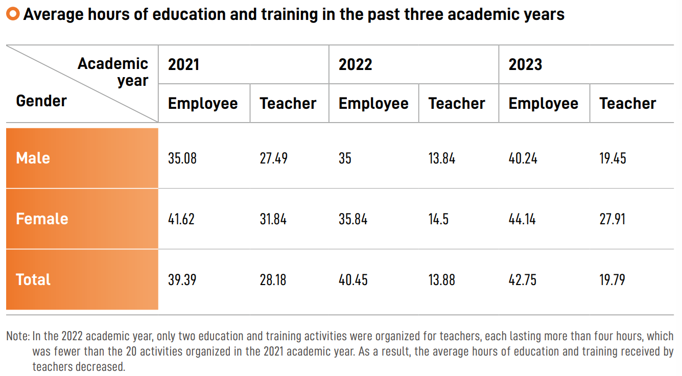 MCUT offers a wide range of training courses to support the professional development of its faculty and staff. These include computer-related certifications, information security, workplace safety, health education, English language skills, fire and earthquake safety, physical fitness, accounting, official document writing, communication skills, telephone etiquette, and gender equity. In the 2023 academic year, employees received an average of 19.79 hours of training, which represents a 29.8% increase compared to the 2022 academic year.