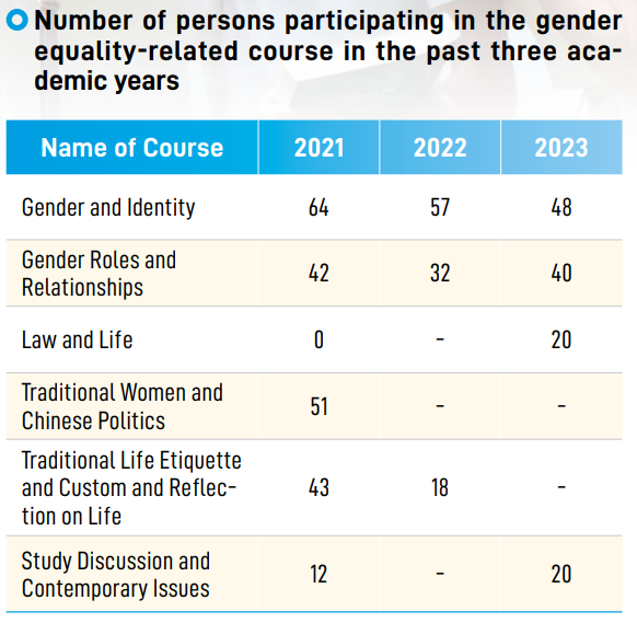 MCUT is committed to creating an equitable and inclusive campus environment for all genders. To achieve this, the university has established a Gender Equality Education Committee, which operates in accordance with the Measures for the Implementation of Gender Equality Education, to oversee the allocation of resources in each unit, develop gender equality education plans, and assess their implementation. The General Education Center at MCUT is focused on promoting gender equality and eliminating discrimination on campus. To achieve this, the center regularly offers courses related to gender equality, educating students on respecting all sexual orientations and preventing prejudice and discrimination. In the event of gender-related incidents, such as sexual assault, harassment, or bullying, the university has implemented preventative measures and a comprehensive reporting system to effectively address and manage these issues. In 2024, there were four gender equity complaint cases. After investigation, two cases were dismissed, while two were substantiated and addressed with disciplinary actions according to relevant regulations. For gender equity complaint contact information, please refer to the Gender Equity Education Committee.
